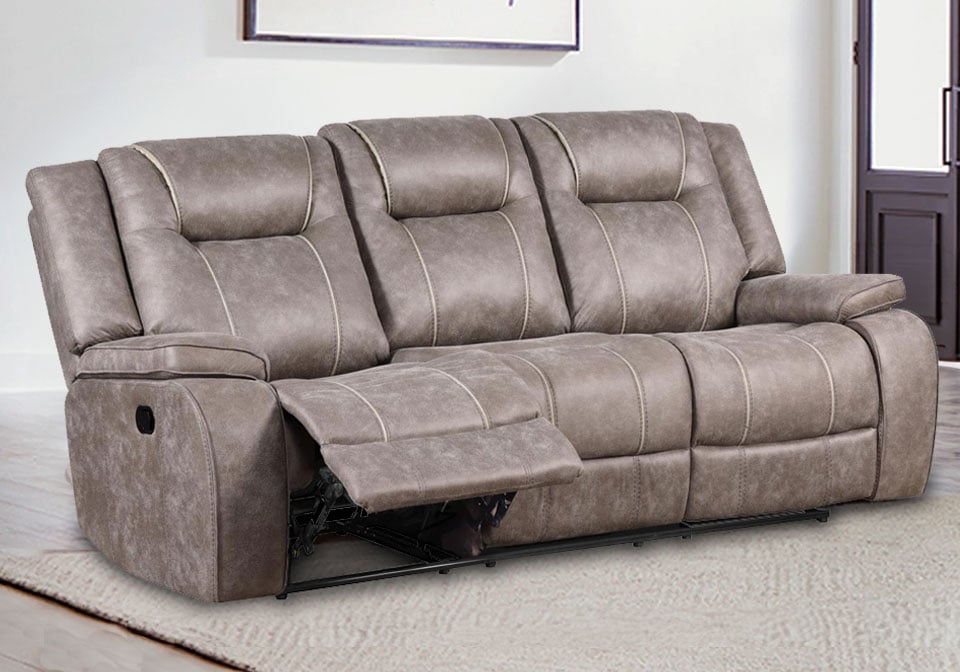 Manual reclining seats, featuring easy-to-operate reclining release latches that are usable by the whole family. Blakes bucket-style seats have been designed to contour to your body, creating the a cozy, yet structured spot for nestling into. High-back Bustle-back pub pillow headrest provides ample relaxing support for your neck at any reclining position. Oversized and fully stuffed, the ultra-plush arm design makes it a joy to lean or perch on. 100% Polyester Microfiber has contrast fabric and stitching and lends itself to a comfy look and feel. Hand-tailored in a high performance polyester blend offering the look and feel of buffed leather.