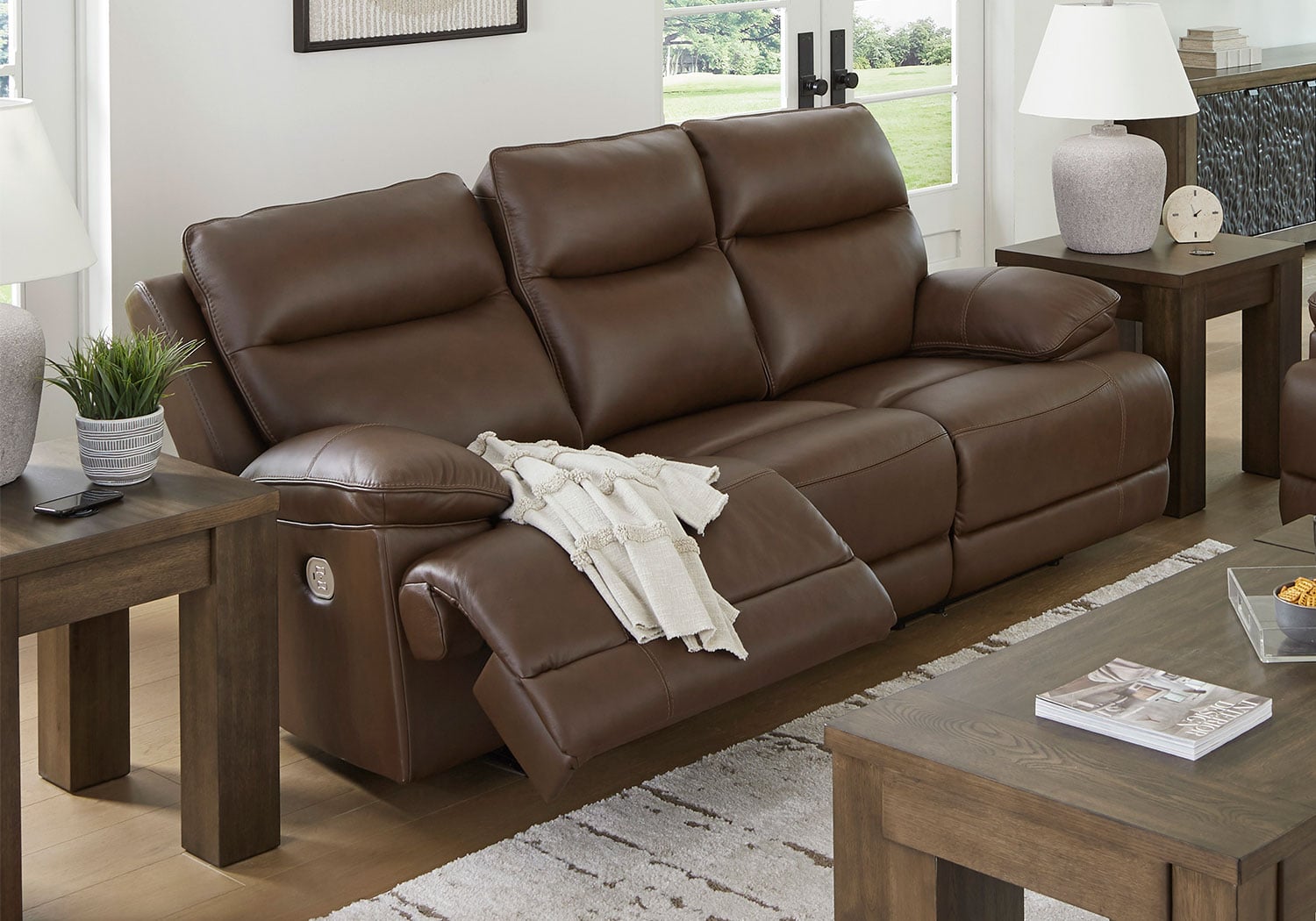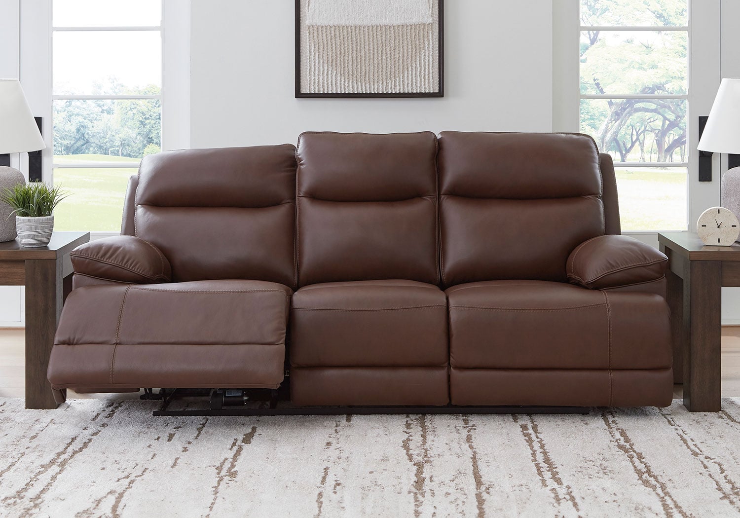 Get ready to indulge in pure bliss. With this power reclining sofa, you’ll experience unparalleled comfort as you effortlessly recline. The Easy View™ adjustable headrests put you in the driver’s seat for optimal TV viewing. And the sofa’s sumptuous upholstery and impeccable stitching bring an ultra-cool touch—perfect for your modern or casual setting.