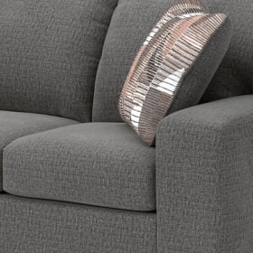 Corner-blocked frame. Attached back and loose seat cushions. High-quality foam cushions wrapped in poly fiber. Accent pillows included. Polyester upholstery. Exposed feet with faux wood finish . Platform foundation system resists sagging 3x better than spring system after 20,000 testing cycles by providing more even support. Smooth platform foundation maintains tight, wrinkle-free look without dips or sags that can occur over time with sinuous spring foundations.