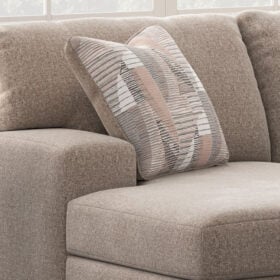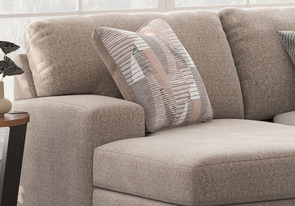 Corner-blocked frame. Attached back and loose seat cushions. High-quality foam cushions wrapped in poly fiber. Accent pillows included. Polyester upholstery. Exposed feet with faux wood finish . Platform foundation system resists sagging 3x better than spring system after 20,000 testing cycles by providing more even support. Smooth platform foundation maintains tight, wrinkle-free look without dips or sags that can occur over time with sinuous spring foundations.