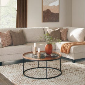 This sectional with chaise incorporates a fresh, transitional feel into your decor. Generously padded seats and super-soft chenille fabric in a versatile neutral invite you to sink in and relax. And the reversible back cushions are easy to flip and fluff when you need a refresh. Finished with a classic roll arm design and stylish accent pillows, this seating set effortlessly suits casual spaces.