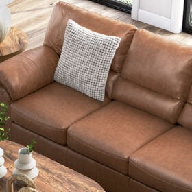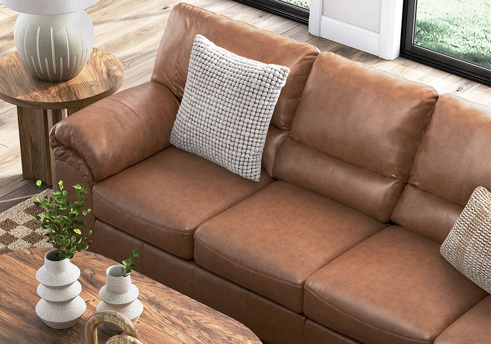 Modern comfort never looked so good. Sporting supremely soft yet durable cushions accented with high-fashion jumbo stitching, this stunning Series is the ultimate choice in comfortably cool, contemporary style. Its Charming-hued faux leather indulges with an upscale feel and wows like the real thing.