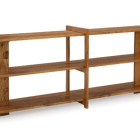 Made with solid acacia wood. Warm honey brown finish. 3 fixed shelves. Assembly required.