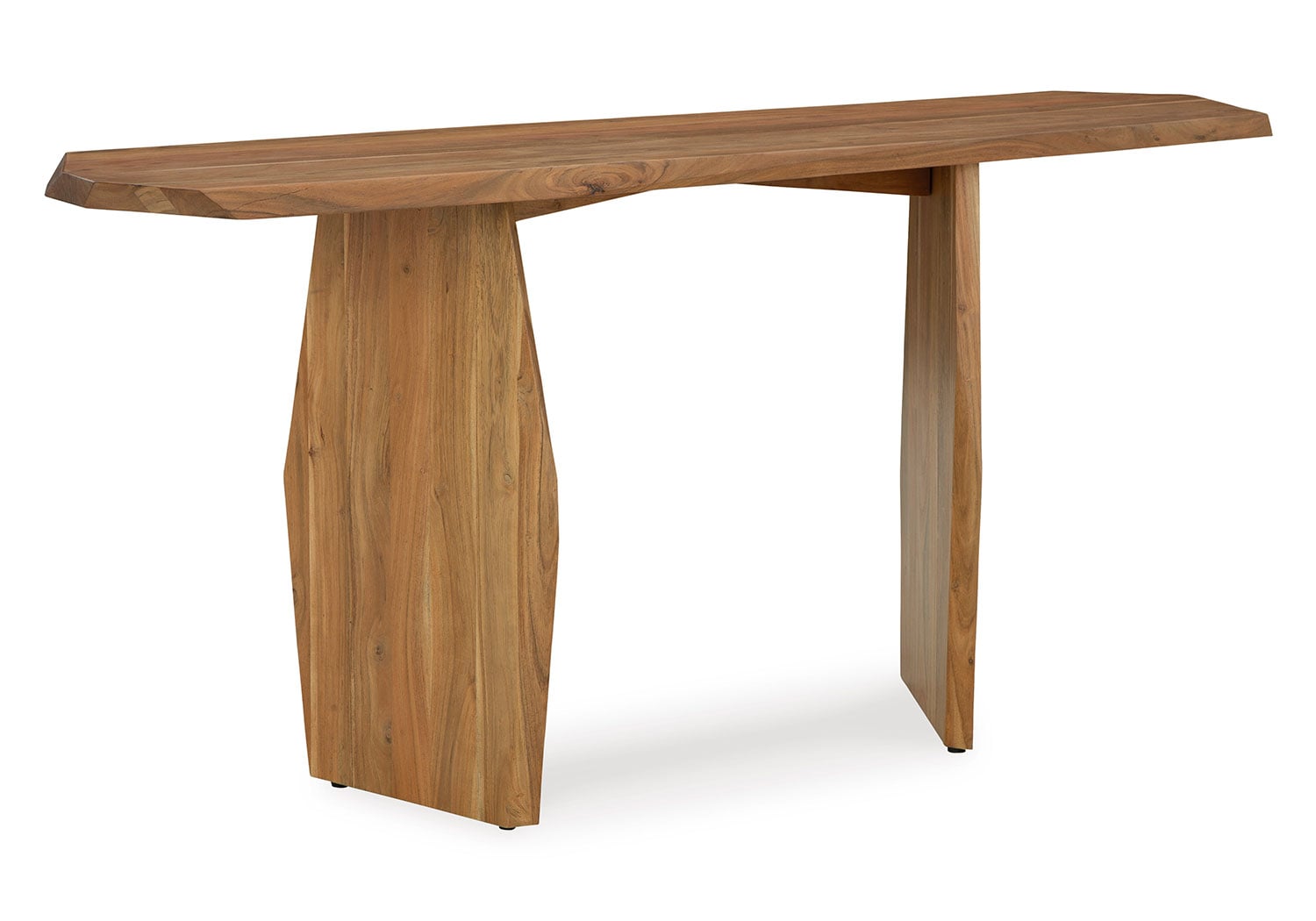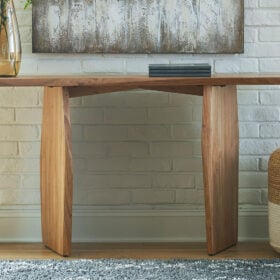 In a word … wow. With its irregularly shaped top and legs, this console table is a spectacular study in contemporary style. The imaginative piece brings nature indoors, with solid wood in a relaxed natural finish that appeals to your earthy sensibilities. Make this innovative table yours by adorning it with handsome decor in the entryway or behind your sofa.