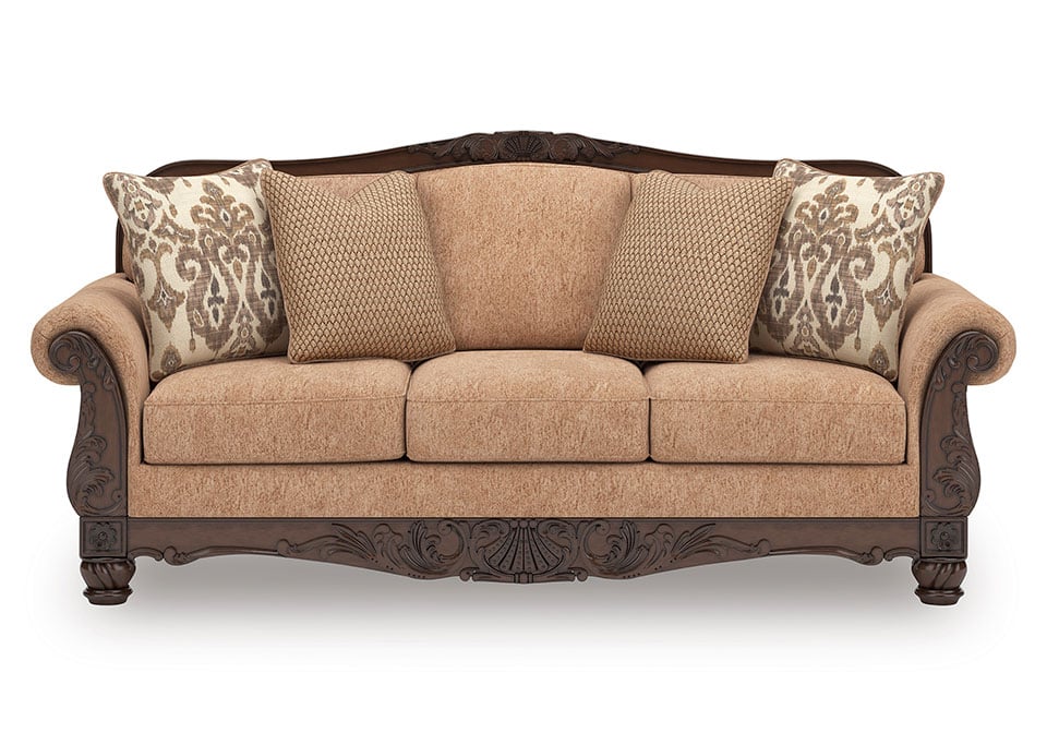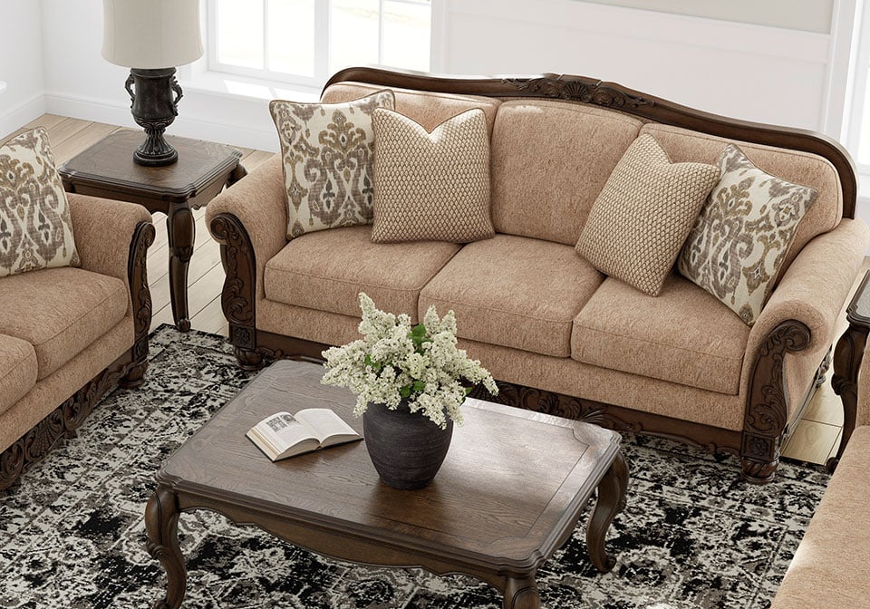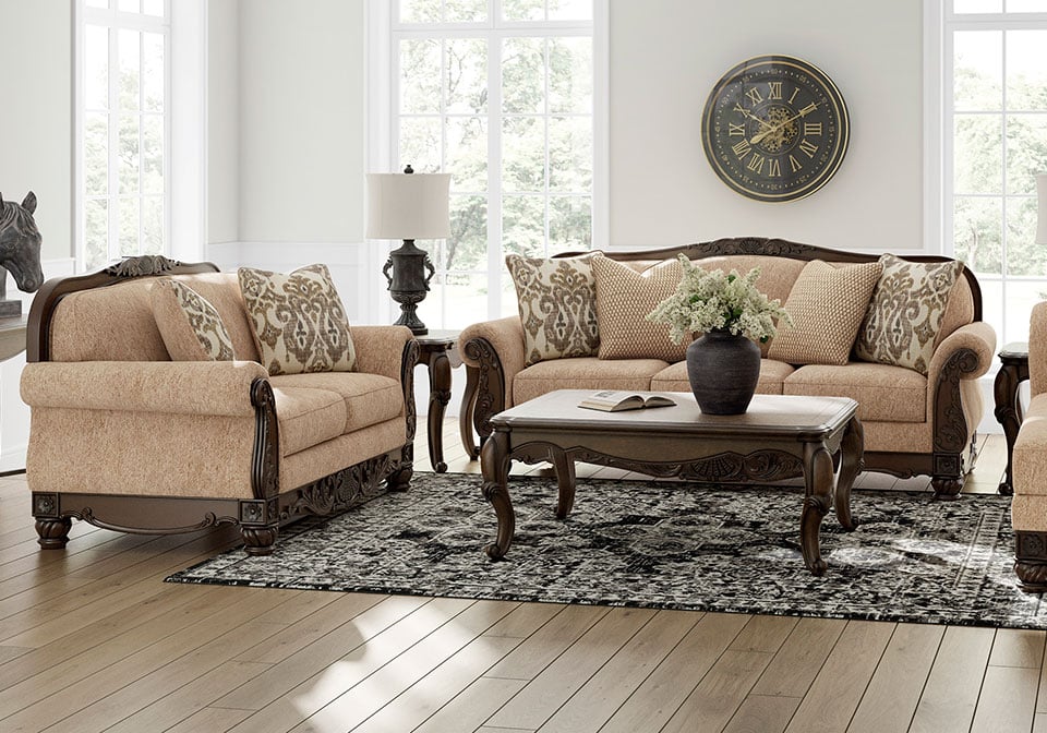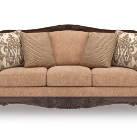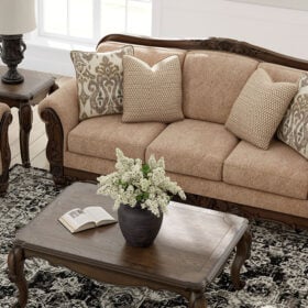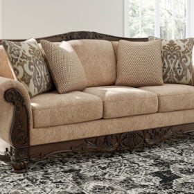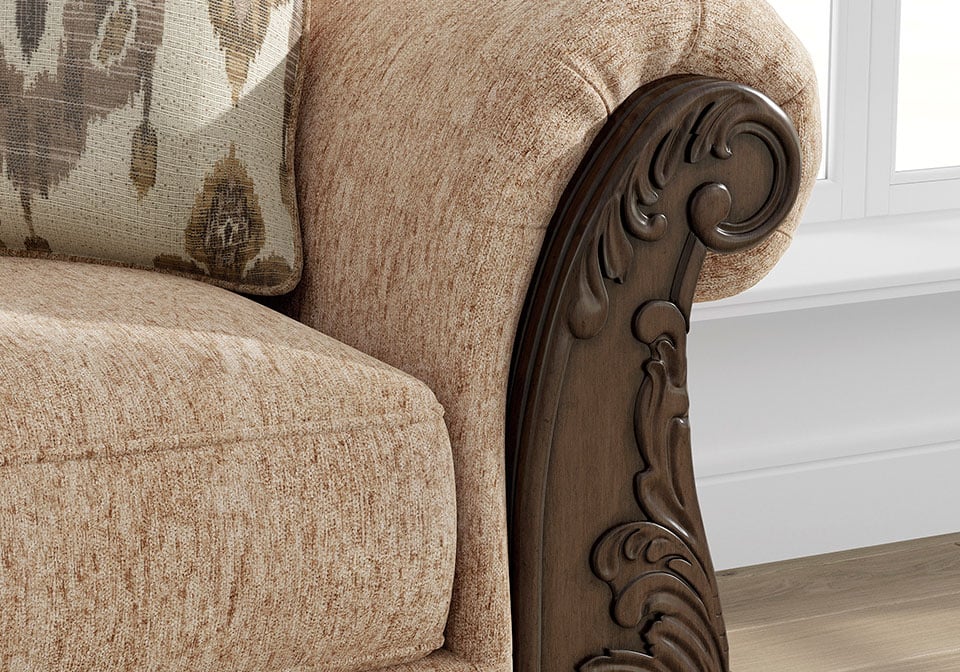 This Series is a gorgeous example of new traditional design. Its elegant profile and plush cushions merge classic flair with modern comfort. Golden high-luster textured upholstery sets the tone for an easy elegant look, while carved details and decorative turned legs make a grand statement. Inspired by then, reinvented for the here and now.