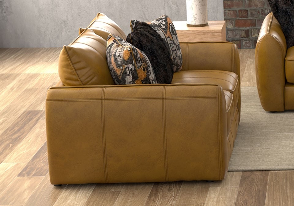 Genuine leather typically covers inside areas such as the back, seat and arm cushions; skillfully matched faux leather covers the remaining areas. Due to its natural origin, real leather can show individual characteristics such as healed scars, growth marks, grain variation and shade variation. Natural variations make each hide unique and do not detract from the wearing qualities of leather. Comfort Coil Seating featuring Comfor-Gel. Crescent Arm Design featuring Jumbo Welt. Jumbo Welt Accents on Seats/Backs. Steel Tech Framing.
