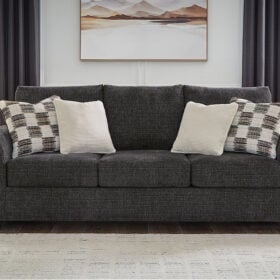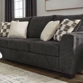 This Series personifies contemporary comfort. Its clean-lined frame and neutral color lend must-have versatility. Softly textured fabric makes it that much more inviting. A welcome combination of chic style and a cozy feel, this piece completes your living room with modern flair.
