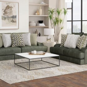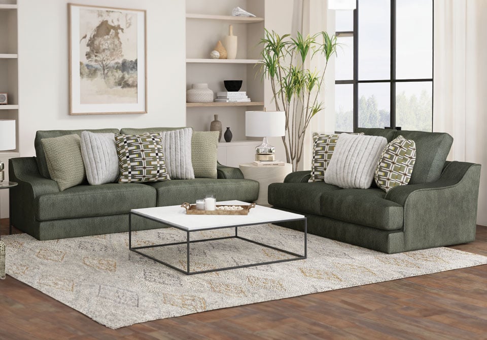 This king-size scale Series delivers spacious relaxation with coil-spring seating and a plush cuddler cushion for ultimate comfort. Upholstered in soft, durable chenille, it features steel-tech framing for lasting strength and a stylish correlating pillow package to complete the look