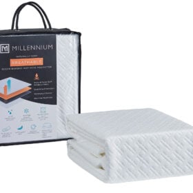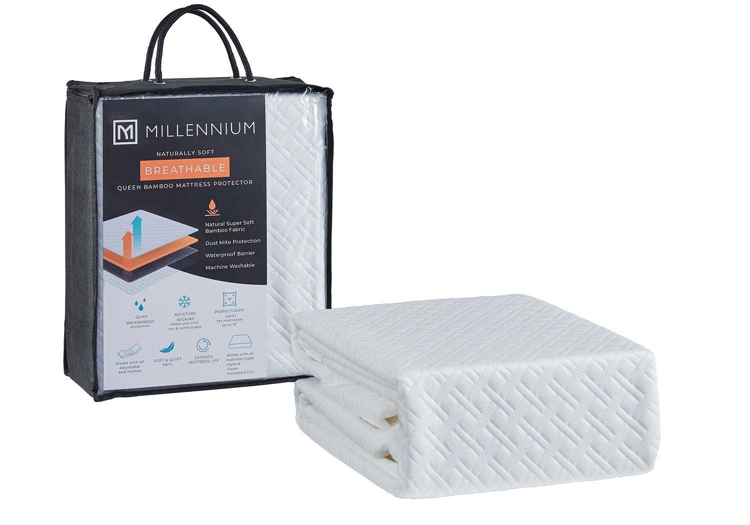 Keep your cool all night long with this mattress protector. Crafted with moisture-wicking bamboo fabric, it keeps you dry and comfortable while remaining cool to the touch. The result: a truly satisfying sleep experience that naturally helps regulate your body temperature for maximum recovery and rejuvenation. The quiet waterproof invisible barrier repels liquids and protects against dust mites so you can truly rest easy.