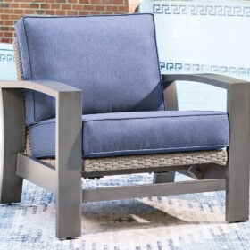 High style crafted for low-maintenance living. Turn your outdoor space into a sweet retreat with this rocking lounge chair. The casually cool piece entices with easy-breezy gray resin wicker over an all-weather aluminum frame, for an upscale aesthetic that’s downright durable. Wrapped in high-performance Nuvella® fabric, the plush cushions are indulgently comfortable yet so easy to maintain. Rock on.