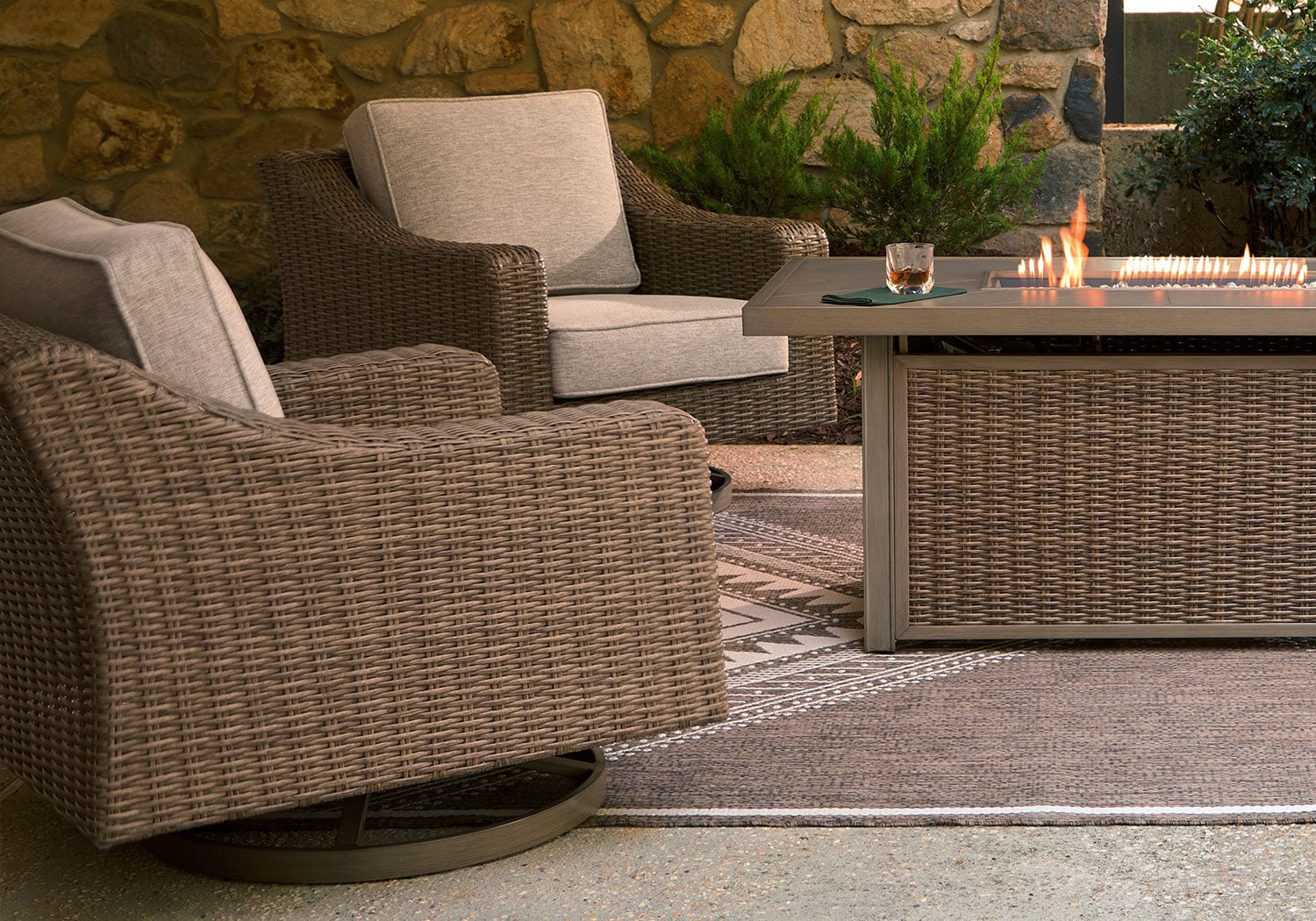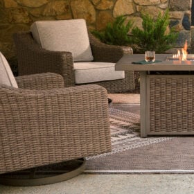 Who says the great outdoors isn’t made for luxury living? This outdoor swivel lounge chair offers all of the high-end design, plush comfort and durability you could ask for, and then some. Its all-weather aluminum frame and resin wicker provide the easy-breezy look you love without the high maintenance. And rest assured—the high-performing Nuvella® fabric is made to stand up to the elements.