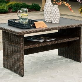 Relax. Refresh. Refine your outdoor oasis. This multi-use table masters high style with beautiful simplicity. A handy shelf for storage, warmly neutral hues and all-weather durability invite everyday use. From chic gatherings with guests to dinner by the pool with the kids, this sleek table makes outdoor living all the more enticing.