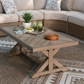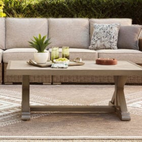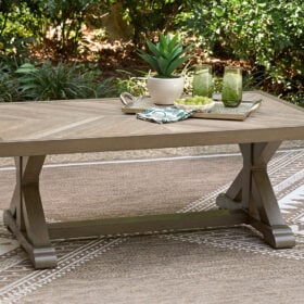 Who says the great outdoors isn’t made for luxury living? This outdoor coffee table offers all of the high-end design and durability you could ask for, and then some. Its all-weather, rust-resistant aluminum frame provides the easy-breezy look you love without the high maintenance. Rest assured—with this table, you can focus less on upkeep and more on relaxation.