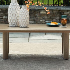 Elevate the appeal of easy-breezy living with this outdoor coffee table. Made to look like wood yet durable enough to weather the elements, it’s sure to serve you and your besties well, year after year. This table’s cool character is made for warm memories.
