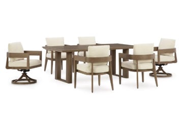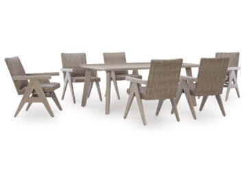Who says the great outdoors isn’t made for luxury living? This outdoor dining Series offers all of the high-end design and durability you could ask for, and then some. Its all-weather, rust-resistant aluminum frame provides the easy-breezy look you love without the high maintenance. Rest assured—with this Series, you can focus less on upkeep and more on relaxation.