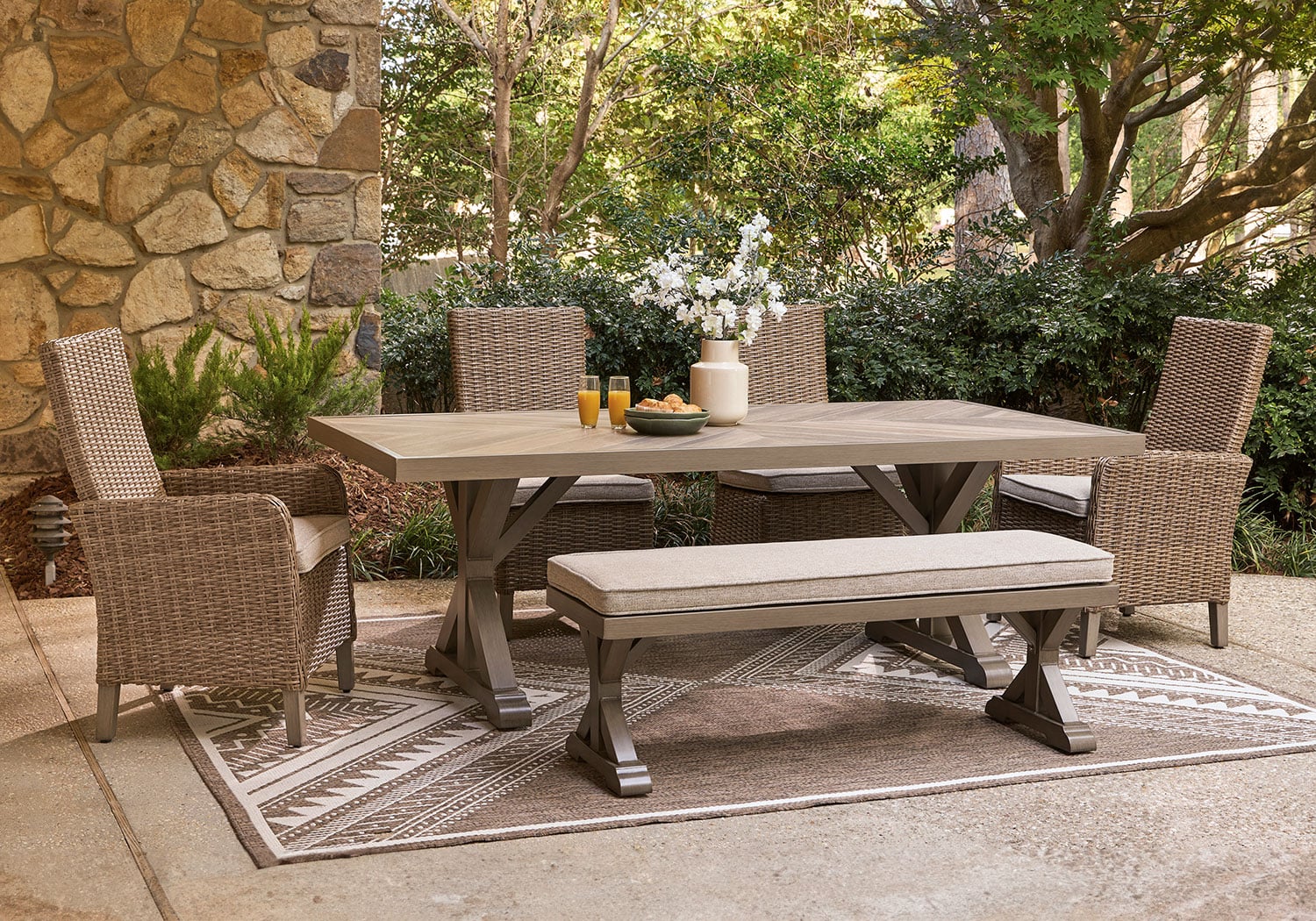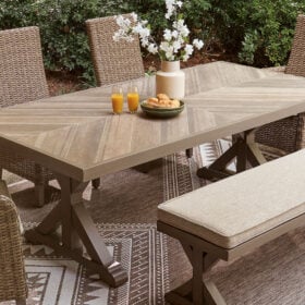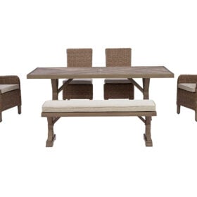 Who says the great outdoors isn’t made for luxury living? This outdoor dining Series offers all of the high-end design and durability you could ask for, and then some. Its all-weather, rust-resistant aluminum frame provides the easy-breezy look you love without the high maintenance. Rest assured—with this Series, you can focus less on upkeep and more on relaxation.