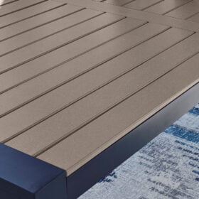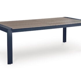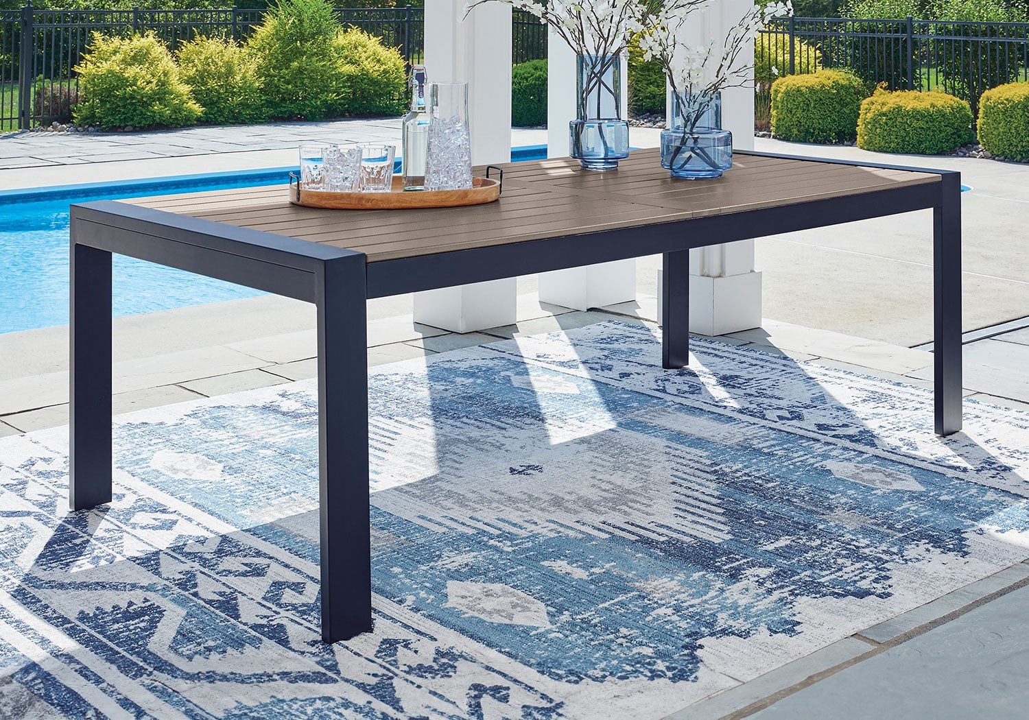 Easy-breezy beauty, made to withstand the elements. This outdoor dining table makes a serene statement with its soothing shade of blue and contrasting wood-look top. Crafted with durable materials for added longevity, it’s a smartly stylish addition to your outdoor oasis.
