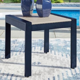 Easy-breezy beauty, made to withstand the elements. This outdoor end table makes a serene statement with its soothing shade of blue and contrasting wood-look top. Crafted with durable materials for added longevity, it’s a smartly stylish addition to your outdoor oasis.