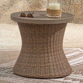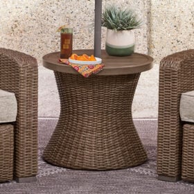 Who says the great outdoors isn’t made for luxury living? This outdoor end table offers all of the high-end design and durability you could ask for, and then some. Its all-weather aluminum frame provides the easy-breezy look you love without the high maintenance. Rest assured—with this table, you can focus less on upkeep and more on relaxation.