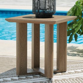Elevate the appeal of easy-breezy living with the Serene Bay outdoor end table. Made to look like wood yet durable enough to weather the elements, this table is sure to serve you and your besties well, year after year. Its cool character is made for warm memories.
