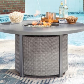 High style crafted for low-maintenance living. Turn your outdoor space into a sweet retreat with this fire pit table. The casually cool piece entices with easy-breezy gray resin wicker over an all-weather aluminum frame, for an upscale aesthetic that’s downright durable. A stainless steel burner with glass beads adds a captivating element sure to wow. Gather round for mealtime, morning coffee chats or cocktails in the great outdoors.