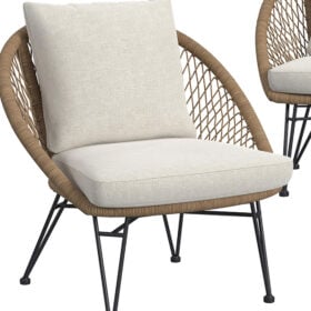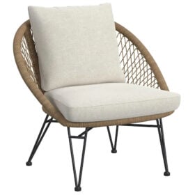 Weather resistant cushions sturdy metal frame breathable woven design lightweight construction easy assembly compact table removable covers fade resistant fabric ergonomic seating durable finish versatile style ideal for patios balconies gardens and outdoor lounging comfort spaces