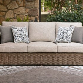 Who says the great outdoors isn’t made for luxury living? This outdoor loveseat offers all of the high-end design, plush comfort and durability you could ask for, and then some. Its all-weather aluminum frame and resin wicker provide the easy-breezy look you love without the high maintenance. And rest assured—the high-performing Nuvella® fabric is made to stand up to the elements.