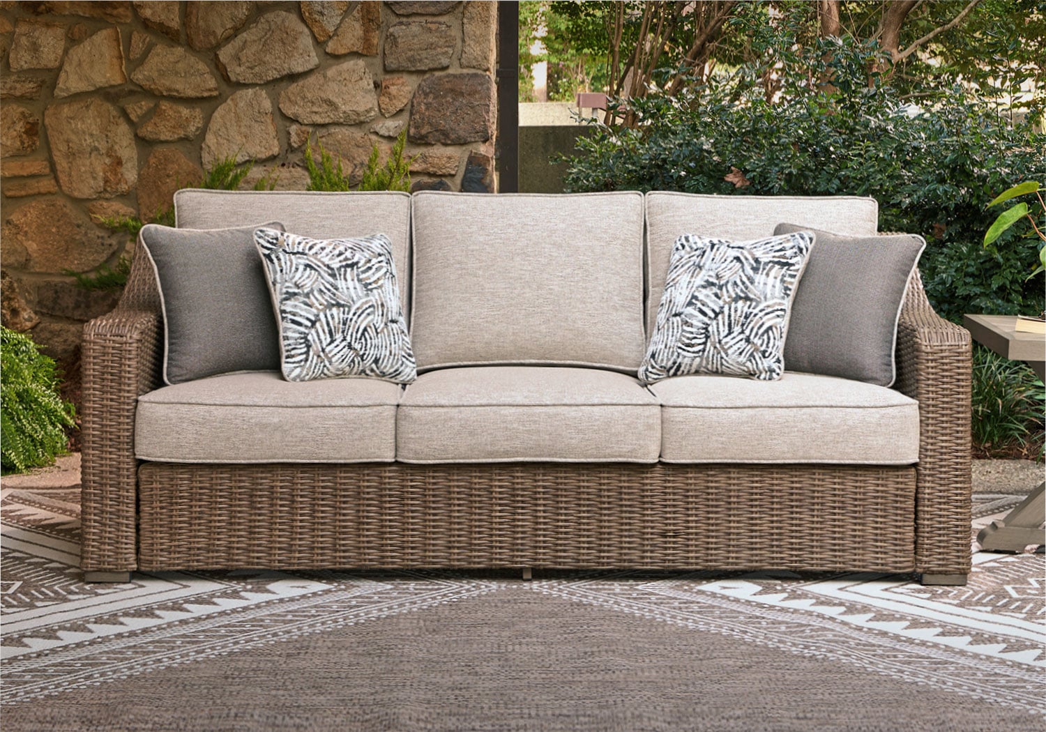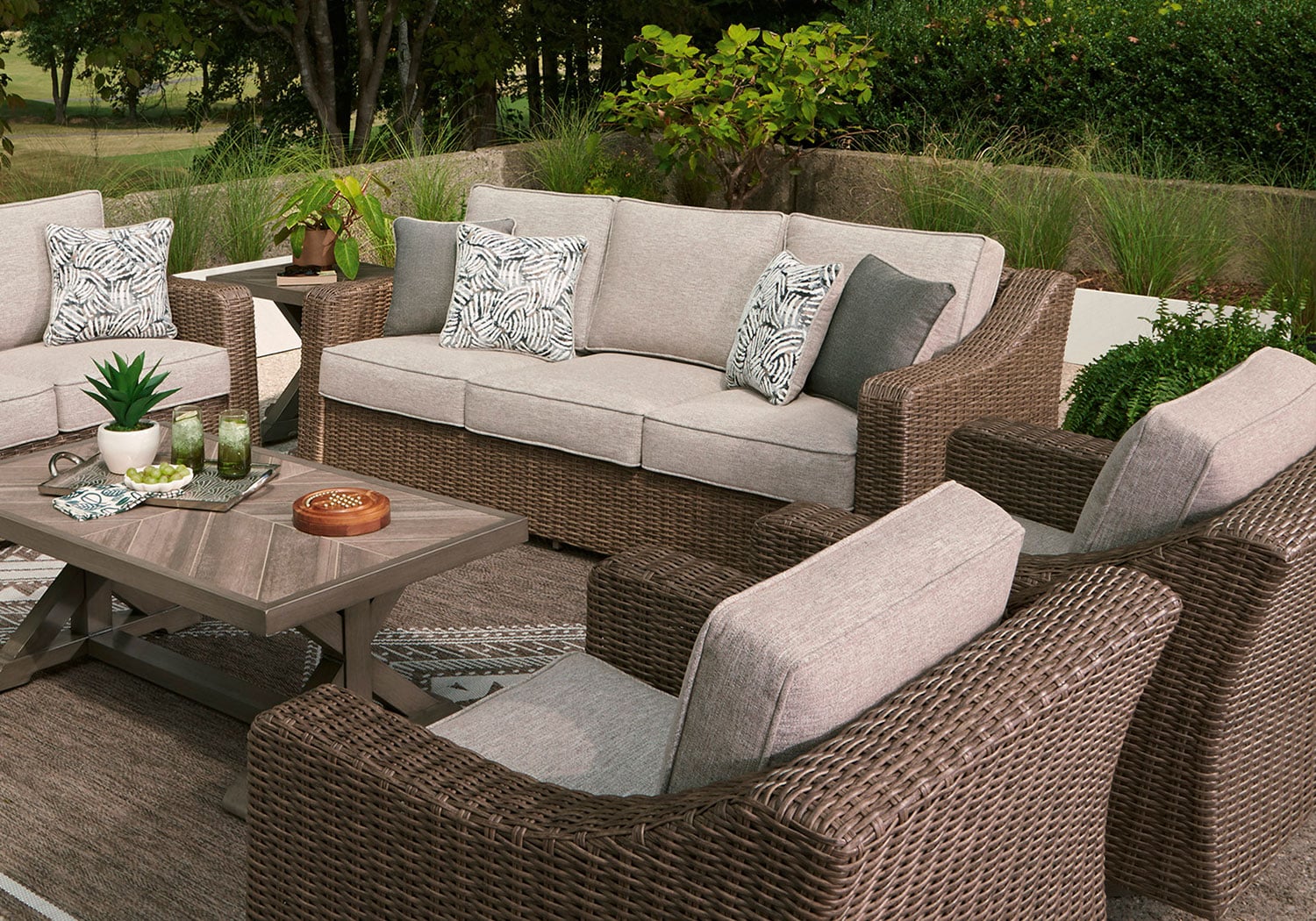 - All-weather resin wicker handwoven over rust-resistant aluminum frame with durable powder coated finish