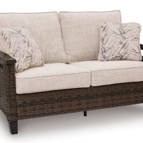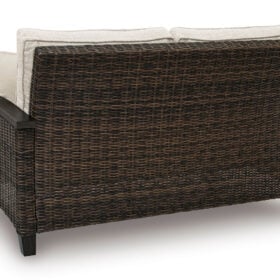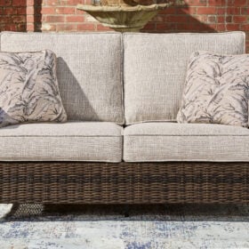 Looking for that special spot to relax and entertain on your deck or patio? Then you’ll love this outdoor sofa. With beautifully textured resin wicker over a sturdy aluminum frame, it brings so much style and warmth to your outdoor space. The thick, comfortable cushions are covered in cleanable, UV-resistant Nuvella® fabric, so you can spend less time worrying and more time chilling. What a smart and stylish way to create a beautiful, lasting space for everyone to enjoy.