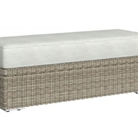 All-weather construction, plush weather-resistant cushions, spacious sectional seating, Powder-coated frame & olefin fabric optimal for outdoor use, versatile design, easy-care materials, neutral tones to complement any outdoor space, ideal for patios, decks, or poolside lounging.