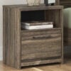 Rest in the casually cool style of this Panel Series. A weathered brown finish over replicated oak grain creates an easygoing vibe, setting the scene in your restful retreat. Clean lines and modern handles provide a fuss-free look.