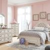 Elevating the art of traditional cottage styling, the Realyn dresser is her dream bedroom retreat realized. Antiqued two-tone aesthetic blends a chipped white with a distressed wood finished top for added charm. Framed drawer fronts and decorative corbels add refinement, while bail pulls in a dark bronze-tone finish lend a classic touch.