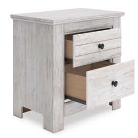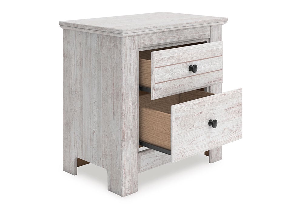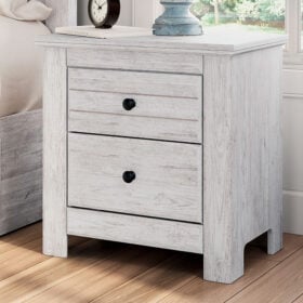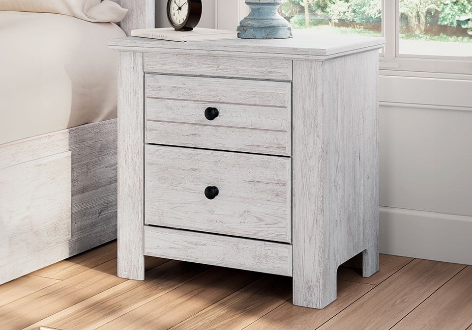 Looking to create a bedroom that feels airy and beautifully put together? This casually comfy nightstand is your perfect solution. Its clean lines, whitewash finish and replicated pine grain exude a charming cottage-inspired feel that brightens your restful retreat. Spacious drawers with dark bronze-tone knobs keep your nighttime necessities nearby, while USB charging keeps you connected. Now there’s a fresh take on country living we can get behind.